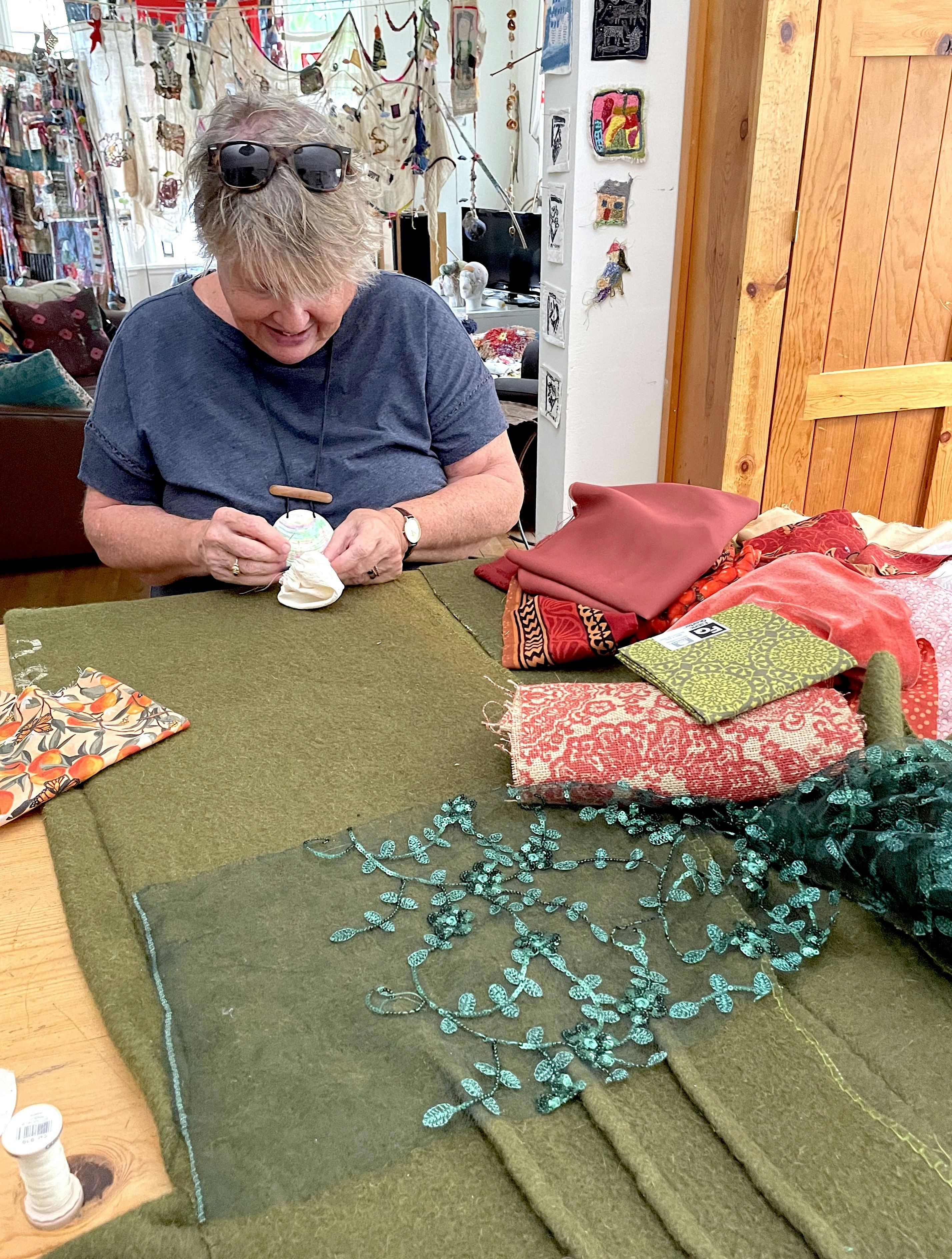 It was such a joy to be with Debra. Her space is so easy to relax in and is a reflection of an artist. She is a great host and really encouraging about experimenting with fabric and textures......Highly recommend. AND the clothes she designed out of unique materials are just beautiful.