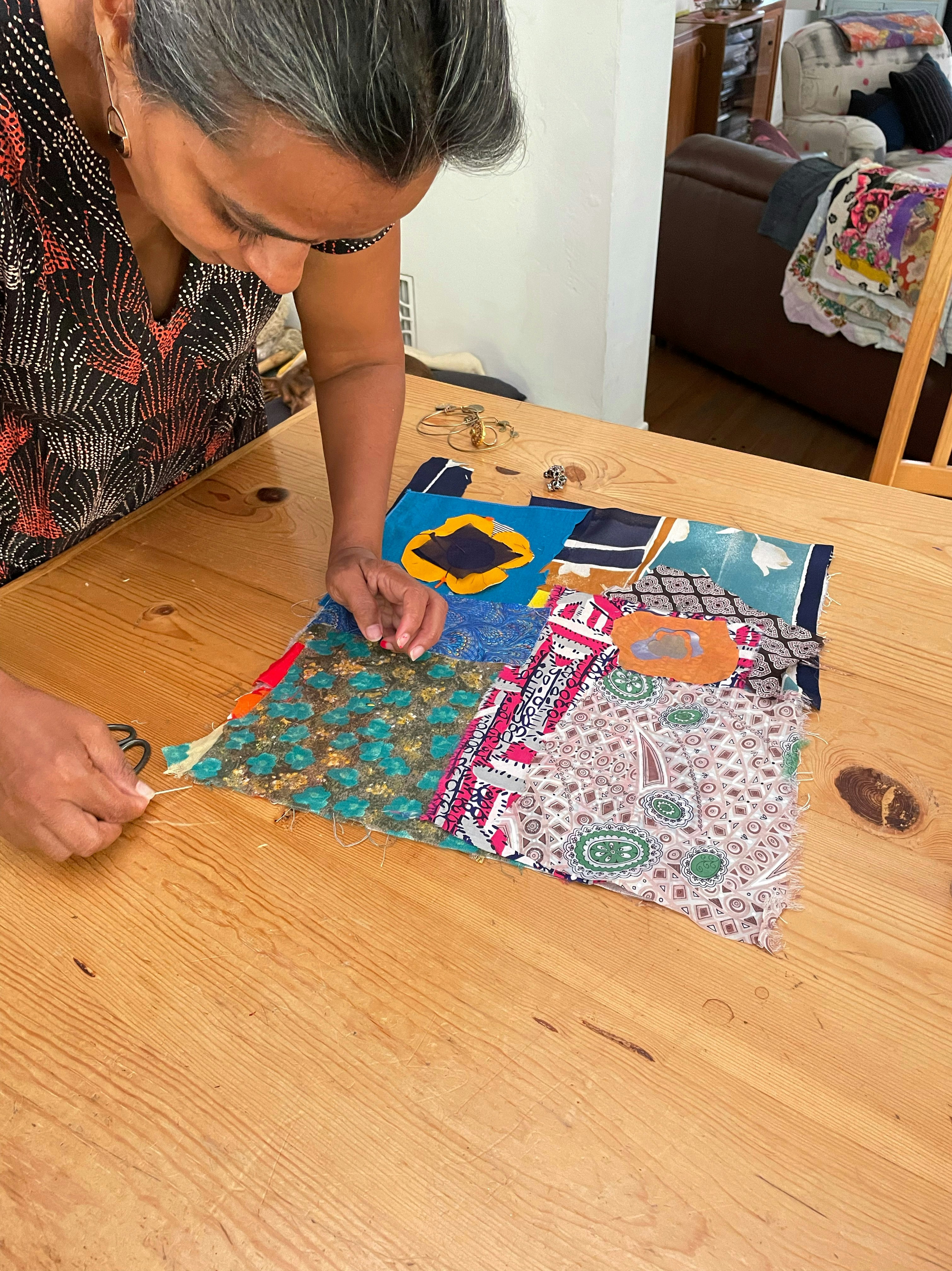 Fabric Collage, Stitching and Knotting with Debra