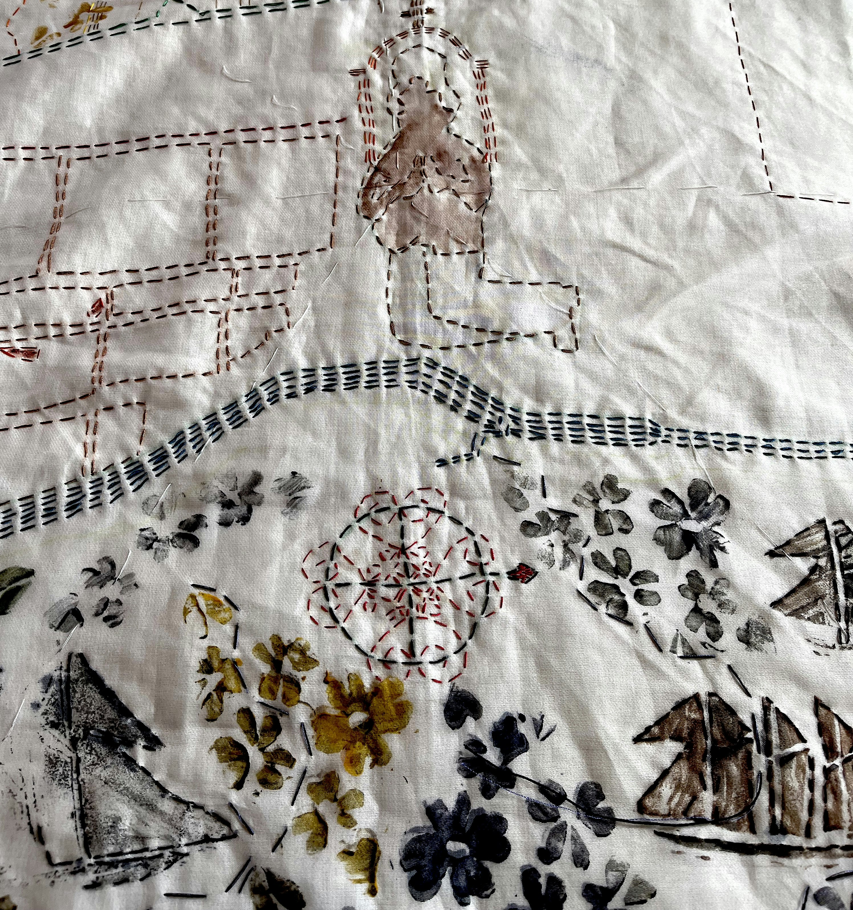 - Learn and experiment with different stitching techniques on cloth and weavings.
