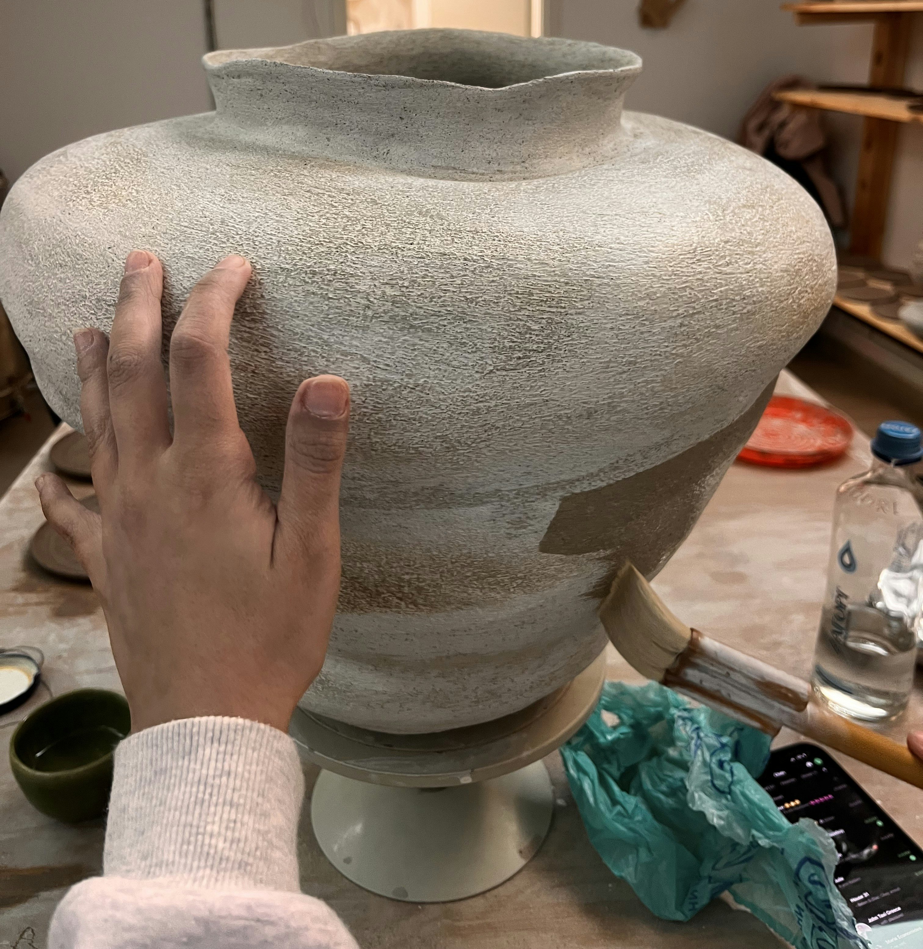 My work as an abstract painter left me yearning to explore three-dimensional space. Hand-building with clay felt like a natural fit—a more organic way to create. The gods (of Athens) led me to Maria, who proved to be a master of her craft. When I presented her with my grand decorative concepts, she gently reminded me that we must first begin with form. It was the most crucial, foundational lesson, Read more
