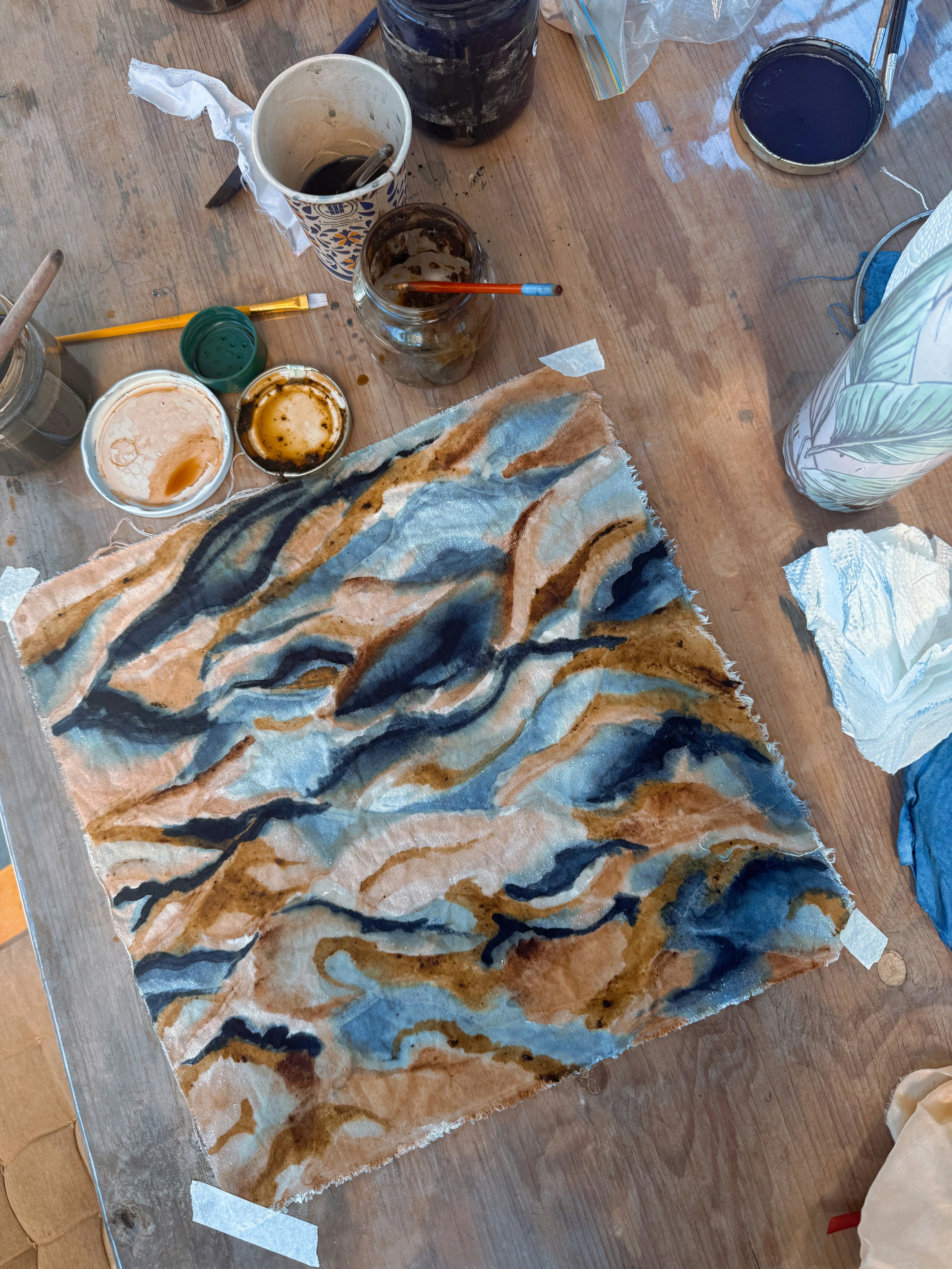 - Work with indigo as a vat dye and create the mystical Maya Blue, experimenting with tanning dyes as mordants and observing color changes under sunlight.