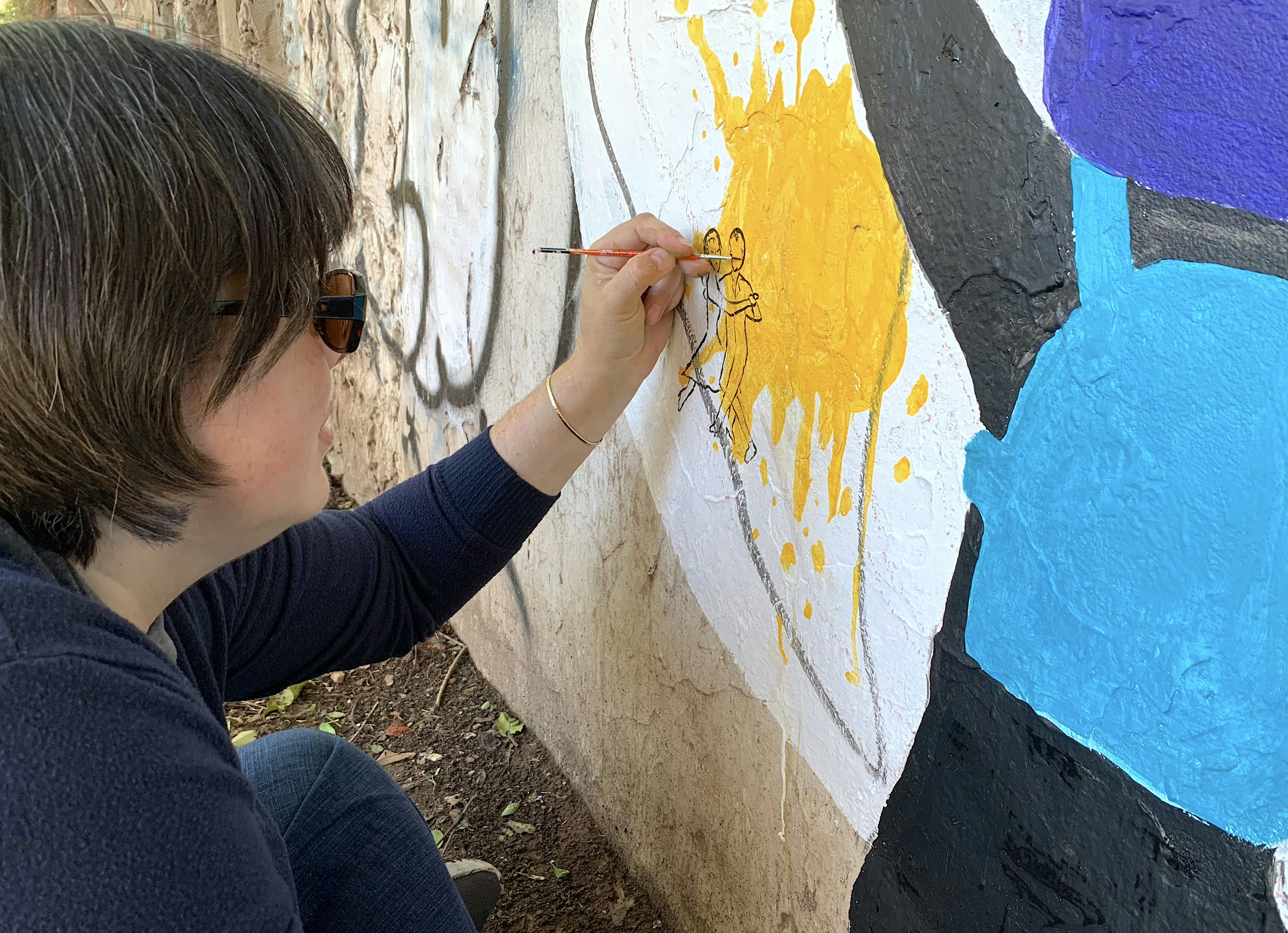 I loved my experience with Pum Pum! She was so nice and welcoming and it was lovely to hear about her mural painting experiences and her work. She did a great job guiding me through the process of transforming my sketch into a full sized wall mural and helping me with color, design insight, and painting during my workshop. I normally create most of my designs on the computer so it was a refreshing Read more