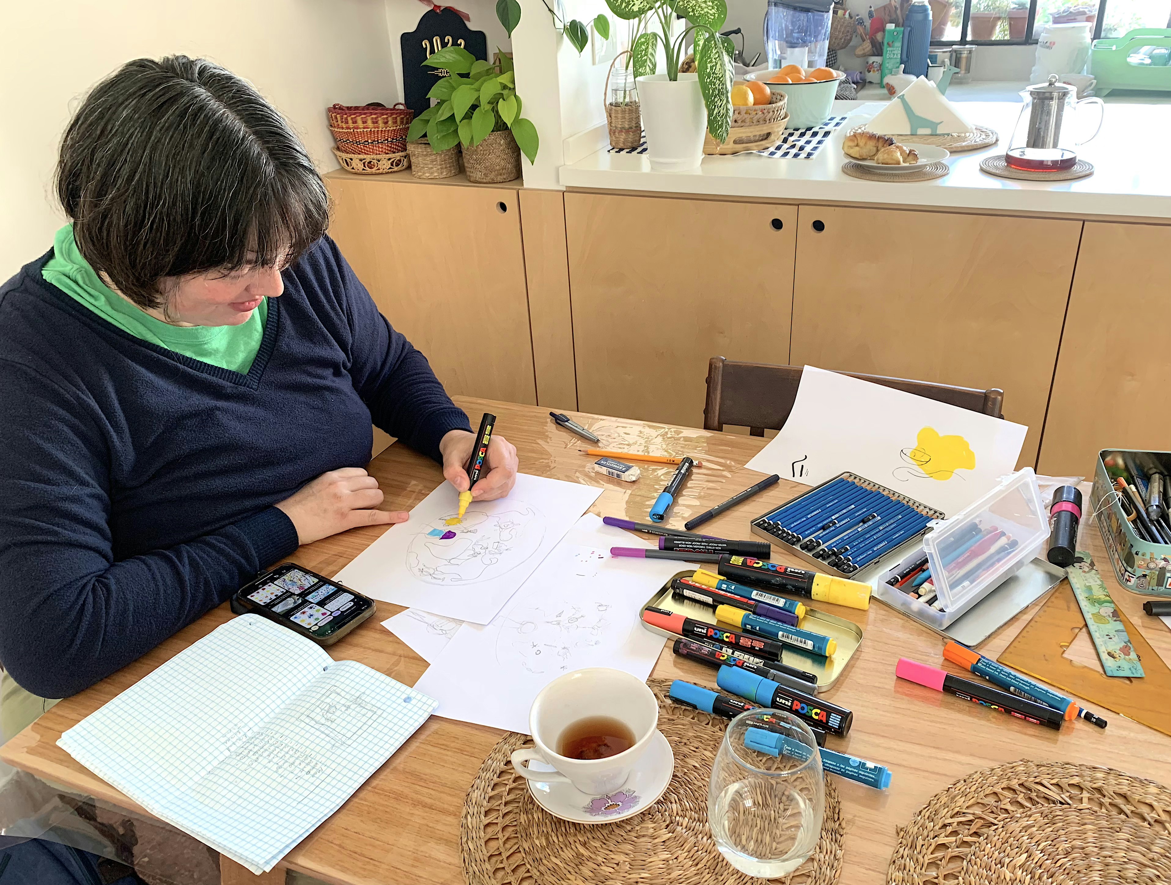 - Creating your own artwork or assisting Pum Pum in her artwork.