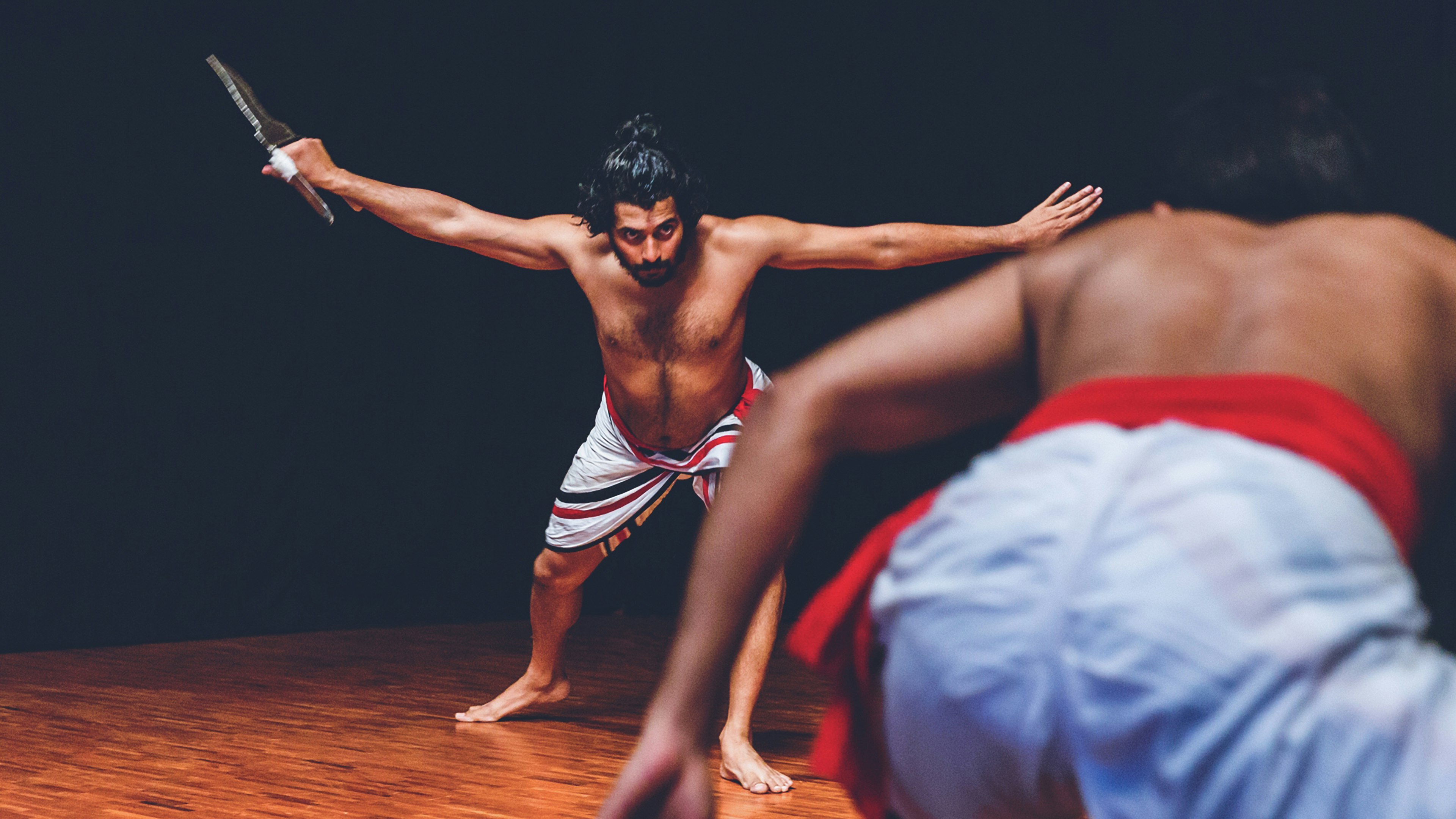 Raam is a kalarippayat performer, instructor, contemporary dancer, choreographer and theater artist. He has been practicing Kalarippayat, a 3000 year old traditional martial art form of Kerala, from the age of 5 as he follows a lineage of Kalarippayat artists. His great grandfather, C.V. Narayanan Nair, re-discovered Kalarippayat to its present form and pioneered the first traditional school in 1956 offering training in northern style Kalarippayat. Trained under his grandfather and uncle, Raam has been performing worldwide, teaching and practicing since 2006. Along the way he has exposed himself to other dance and movement forms like bharatnatyam, ballet, capoeira, modern dance techniques, contact improvisation, floorwork techniques, release technique etc.