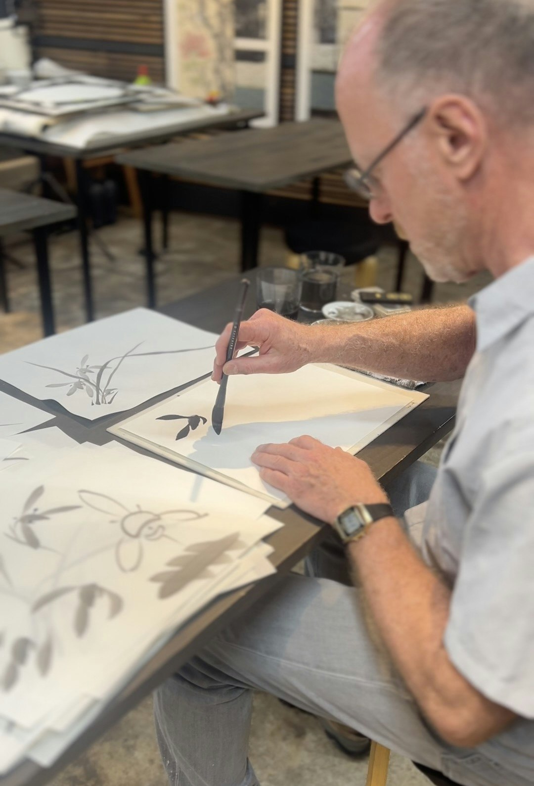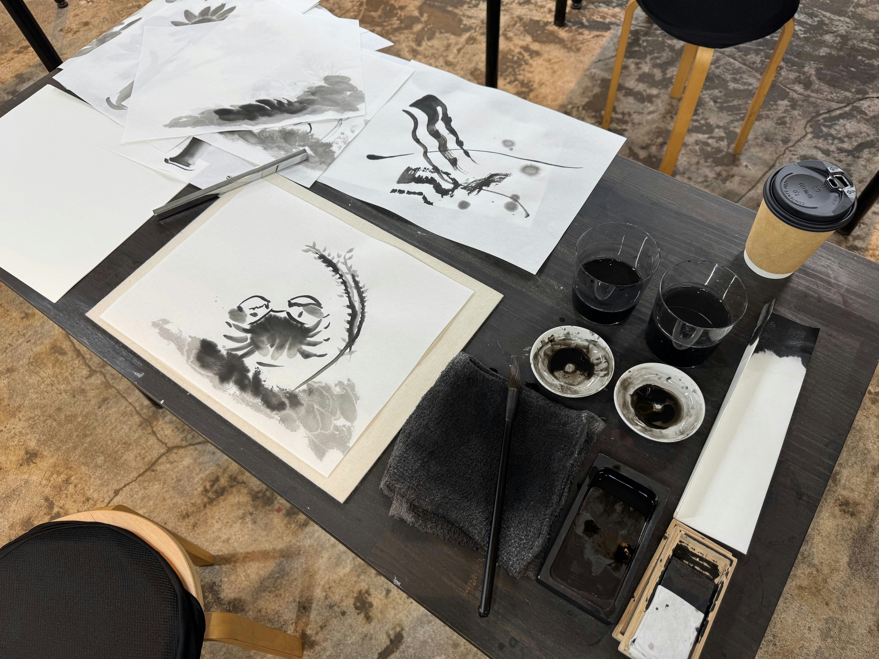 Overall experience was very nice. Unfortunately couldn't attend the full 3 days of workshop (due to personal emergencies). but time we spent with Shukou was quite useful. In terms of how to make the ink, brush techniques etc. He was also kind enough to show me around, take me to a sushi bar for a lunch. was a lovely experience, thanks to Shukou.