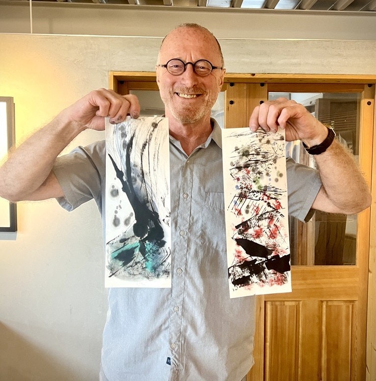 I am very interested in studying Japanese ink painting, and the three days with Shukou was everything I wanted it to be. He gives good instruction and advice on everything from posture, body movement, breathing, and using your core, to holding the brush, and loading the brush with ink and water. He gives steady feedback with every attempt. I surprised myself with how well the abstract painting tur Read more