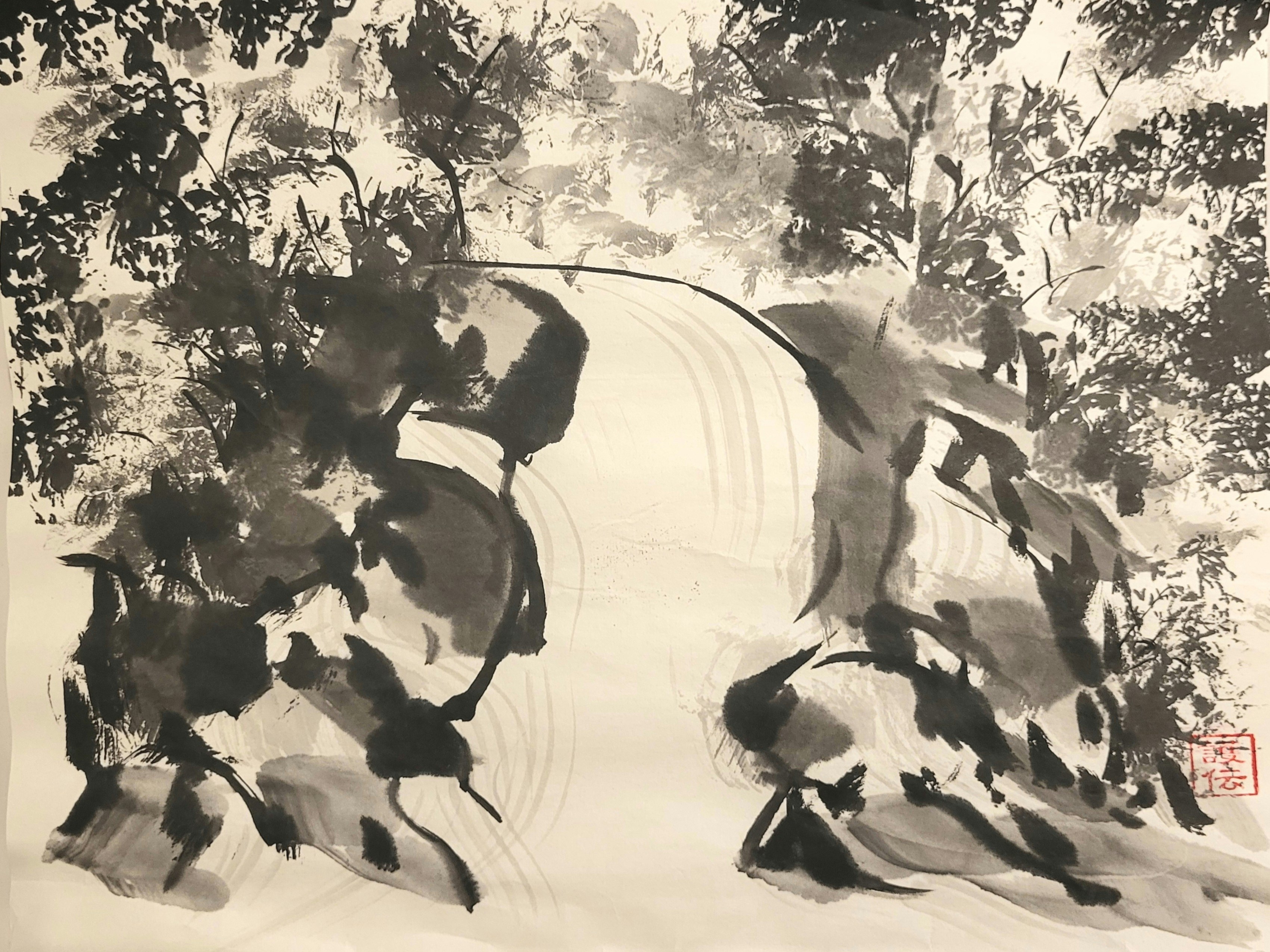 Japanese Ink Painting with Shukou