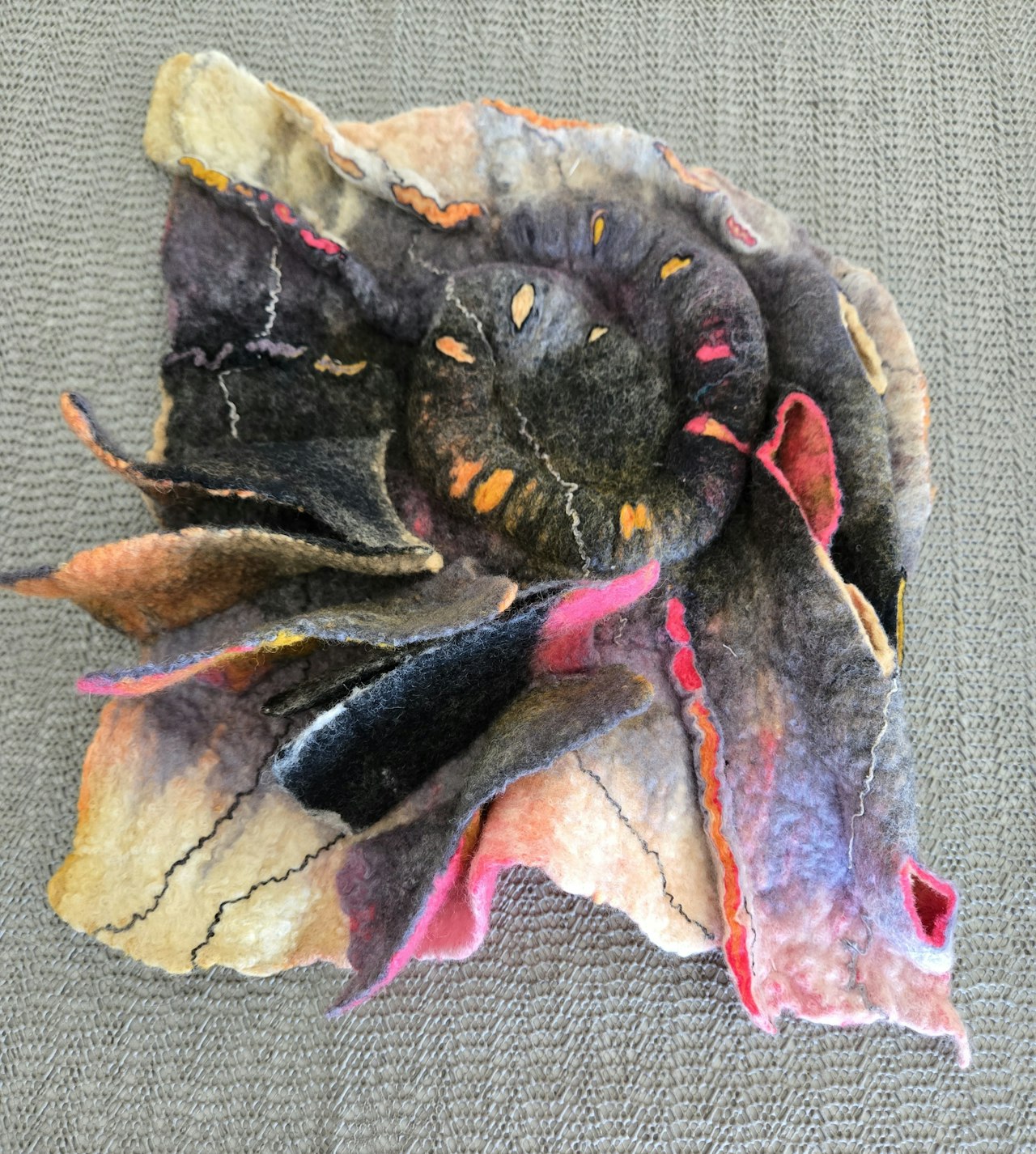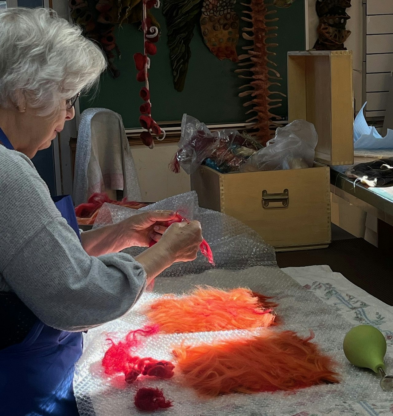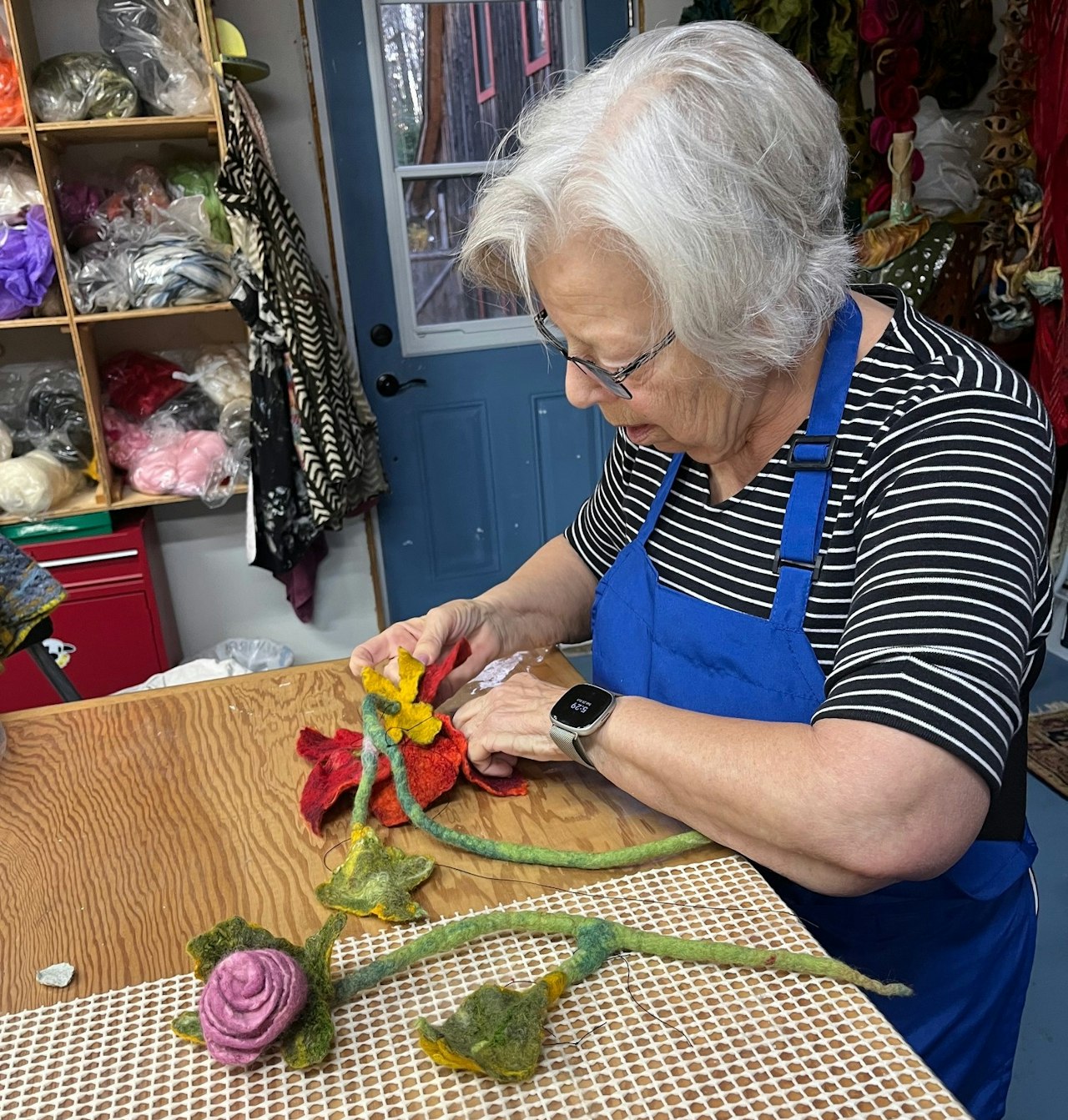 I've just returned from the most wonderful time in Gore Quebec with Marjolein!! I enjoyed my time immensely and Marjolein made sure that my leaning goals were met. Marjolein's home and study are special spaces where she and Robert make you feel like you're staying with family. Even rain did not take away from my fun. Their meals are delicious and who knew I'd find vegetarian meals so delicious and satisfying. Robert's desserts are wonderful and my aim is try out new vegetarian dishes and desserts now I am back! That was an added bonus to my adventure. The felting work we did showed me so many new techniques that I want to do again and incorporate into my felting work going forward.