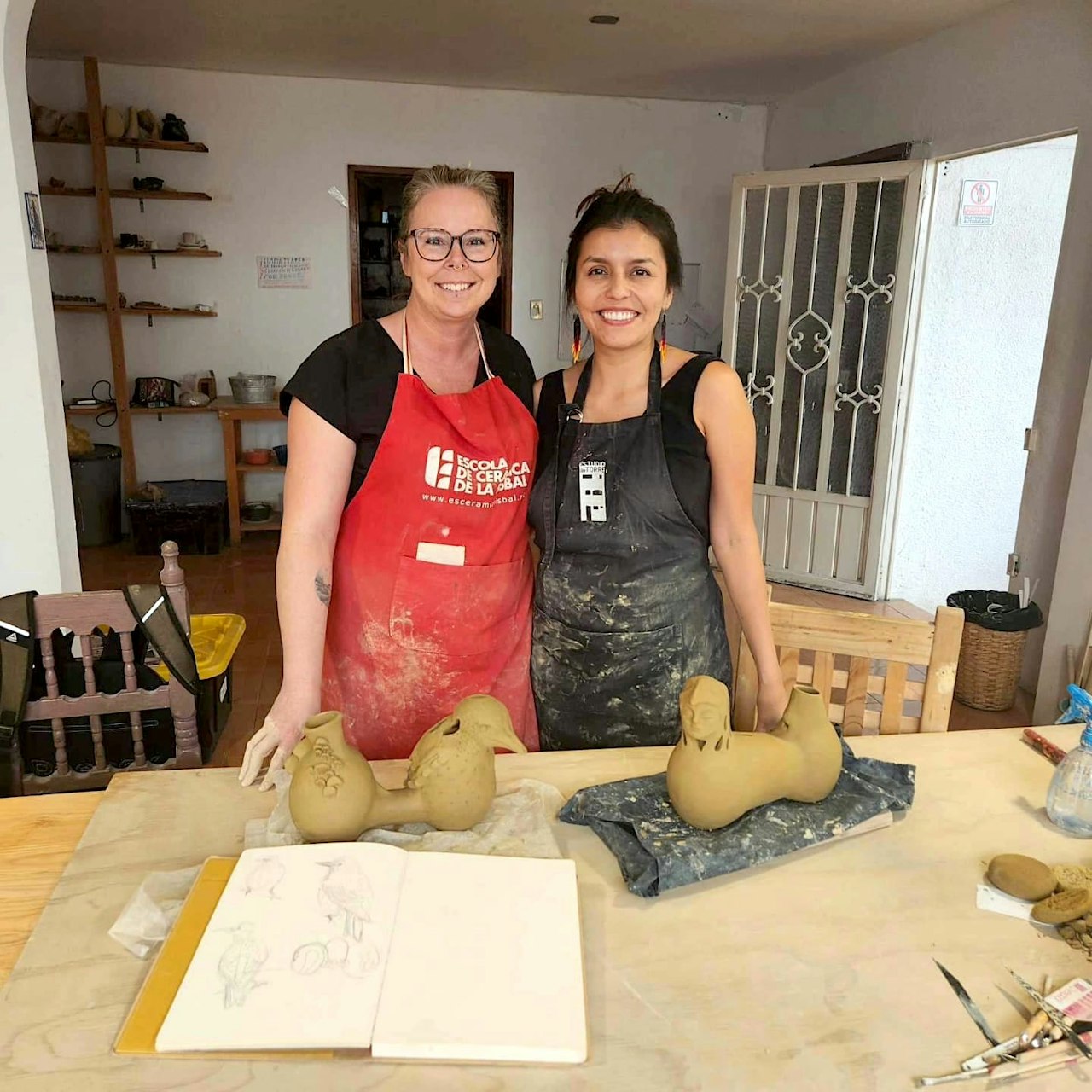 When I think of travel I think of all the things there is to learn, and all the amazing things that people around the world know and create. I would much rather have that concentrated time with a person than skimming the surface of a culture.I created a whistle jar, which was an ambitious goal. Technically, it is very detailed, and when I found out more about their anthropology I knew it was important to give a lot of thought and attention to the symbolism that I chose. Having experienced deep loss and grief in our family, I incorporated this experience into my artwork, so it has become imbued with a deep meaning to me. This is on top of the meaningful friendship that was also created in the studio. I will continue to create these instruments at home and have been encouraged by Hernan and Natalia to keep in touch if I need help or just to share my work with them!
