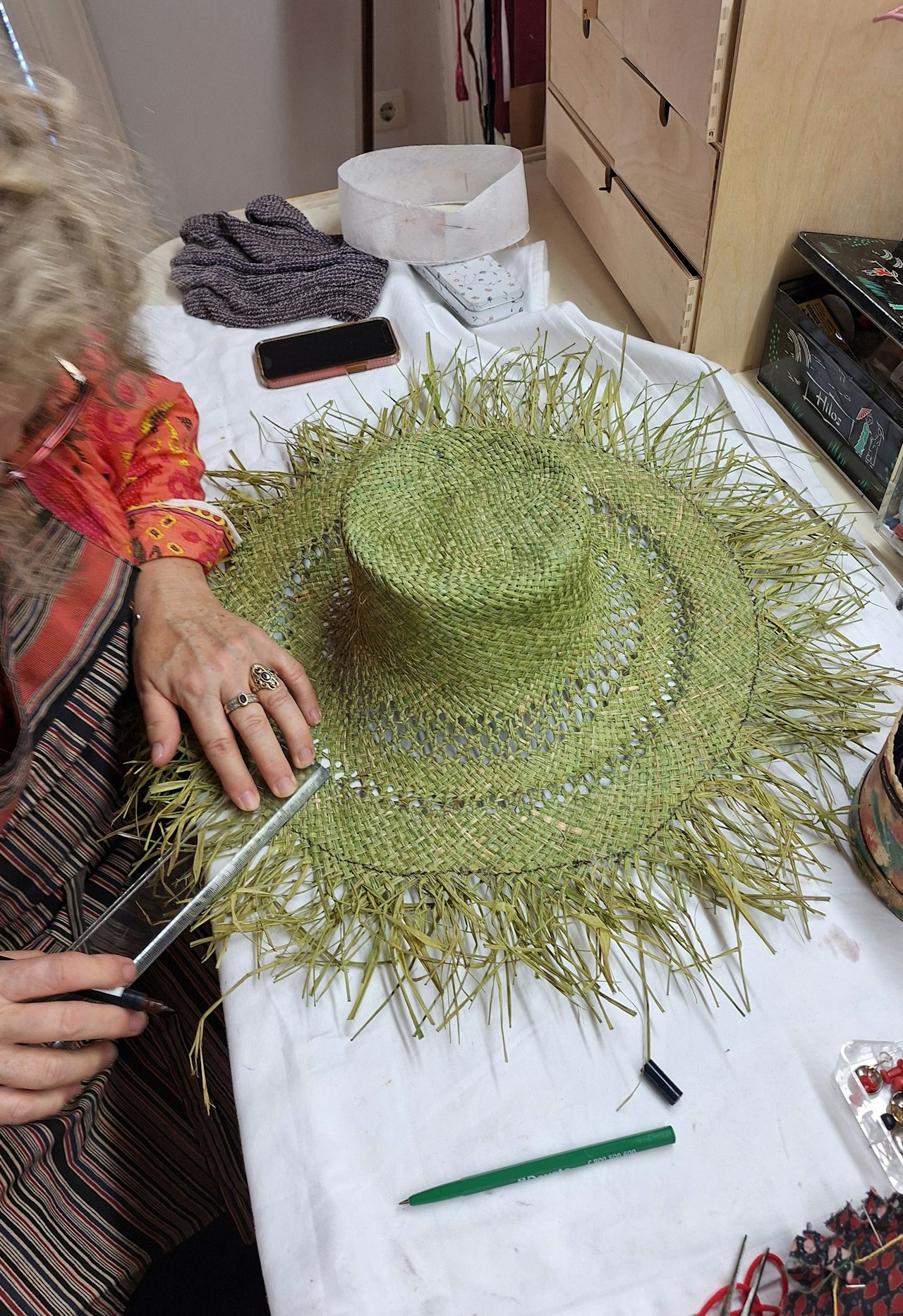 I was a little nervous travelling alone for the first time in many years, but as I boarded the plane in Sydney my excitement began to take over. Arriving at Almudena’s studio on my first full day in Bilbao I found myself in a dream space created by an amazing artist, who I can now definitely call my friend. All nerves gone we began to talk, laugh and create. I learnt so many new skills from Almudena and we managed to create 3 beautiful pieces In only a matter of days. The week flew by and I realise I have so much more to learn about the art of millinery and hope to return for more treasured time in Almudena’s studio.