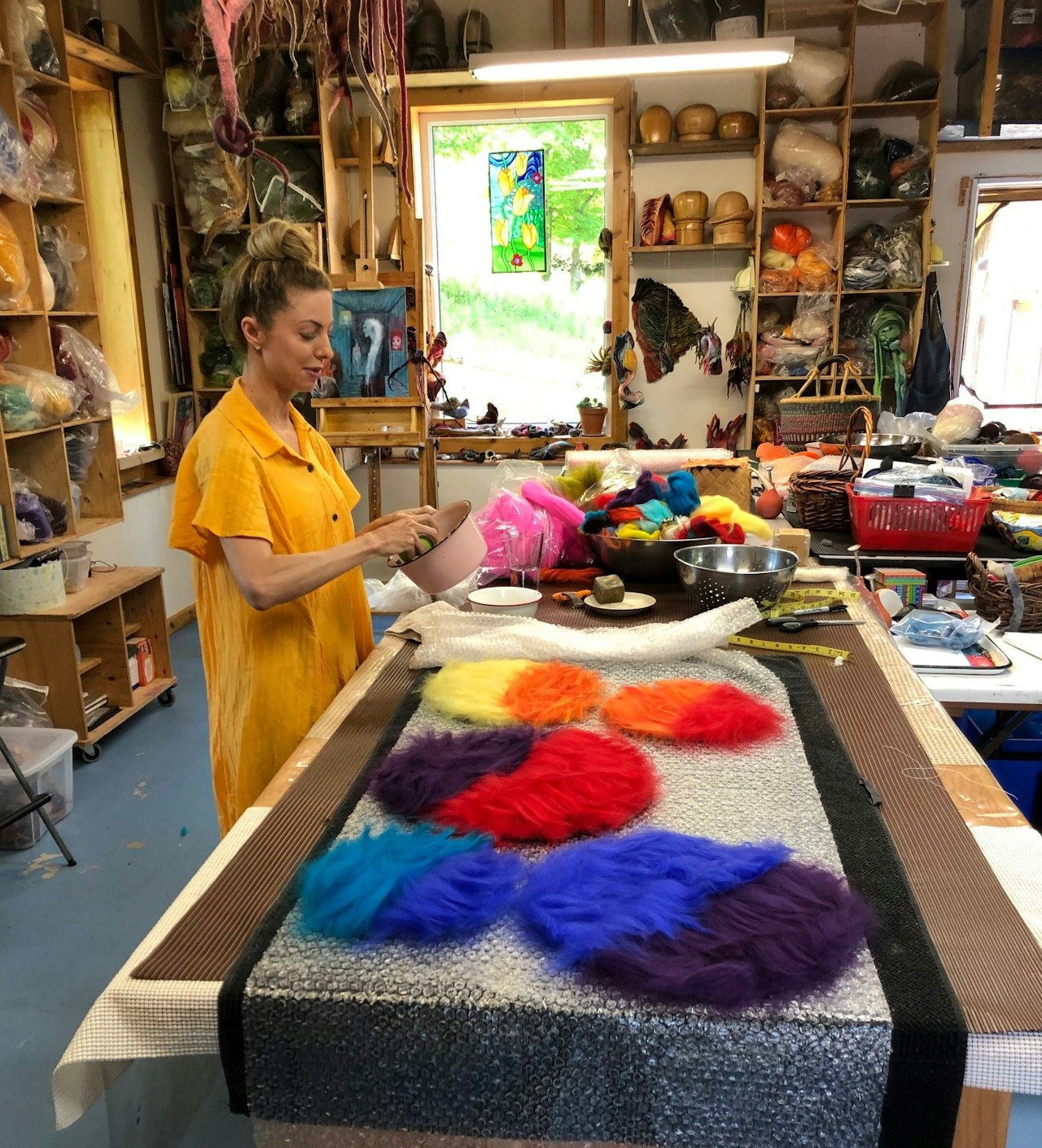 My time with Marjolein was magical. It was precisely the creative retreat I needed. Four days of learning to let go of my artistic expectations, exploring color combinations I never previously dared, and daily inspiration as I worked alongside someone whose art I genuinely admire. Marjolein tailored the days to what worked best for my schedule and goals. She is a skilled teacher who teaches multiple techniques you can bring into your larger projects upon leaving. An artist through and through, you can see art in every fiber of Marjolein’s being - from her vibrant studio and the multitude of felt creations hanging throughout her home, her fantastic otherworldly paintings, and even her energy, which is full of light and artistic beauty.